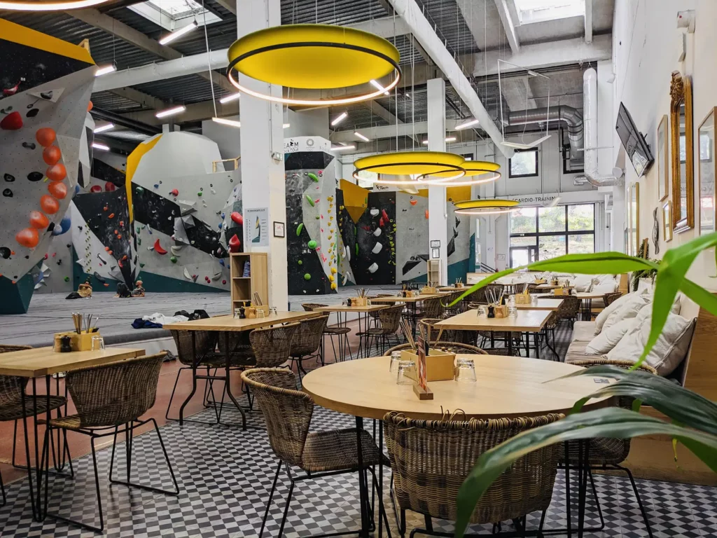 Chez nous, c’est de l’escalade 100% bloc sans corde ni baudrier et avec d’épais tapis de réception pour un maximum de sécurité. Et s’il existait déjà des salles d’escalade de ce type dans l’Hexagone, l’idée d’y intégrer des services complémentaires est novatrice. Restaurant, salle de musculation, hammam ou sauna, ostéopathe, yoga… Chez Block’Out, on retrouve tout pour faire du sport et instaurer un vrai moment de partage entre amis ou en famille.